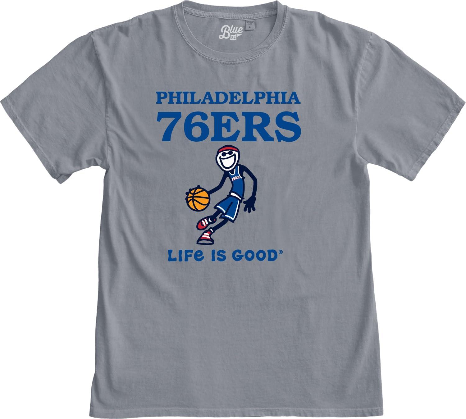Blue 84 NBA Unisex-Adult NBA Officially Licensed Life is Good T-Shirt Ringspun Basketball Jake Team Color(Team Color)