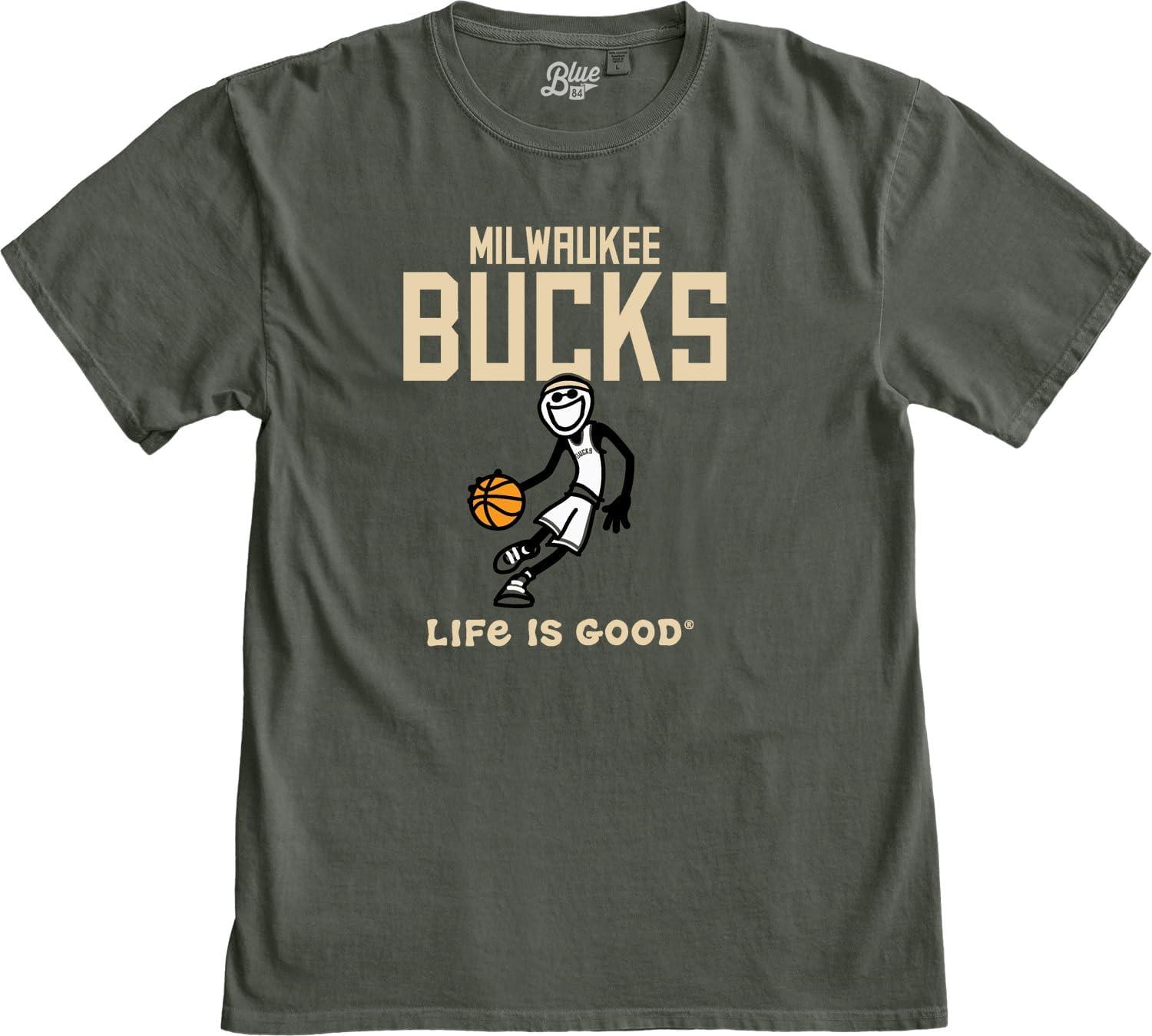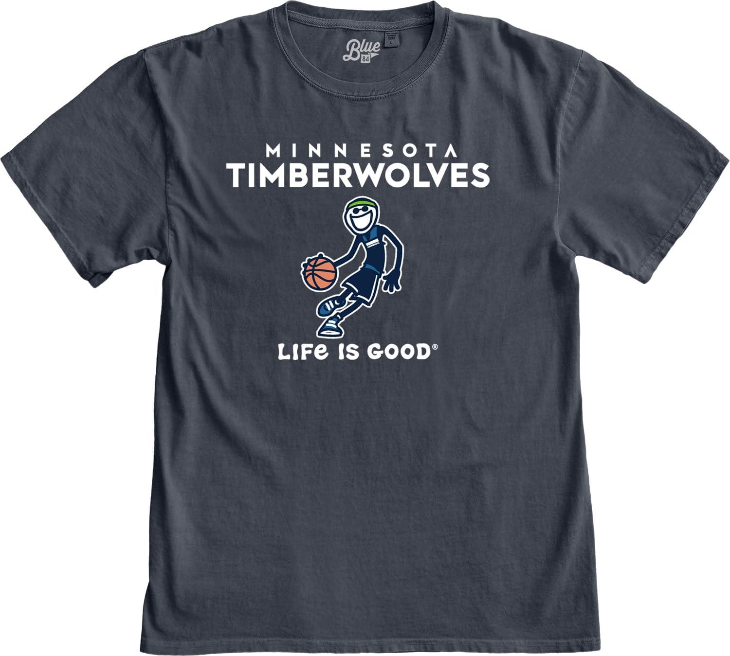 Blue 84 NBA Unisex-Adult NBA Officially Licensed Life is Good T-Shirt Ringspun Basketball Jake Team Color(Team Color)