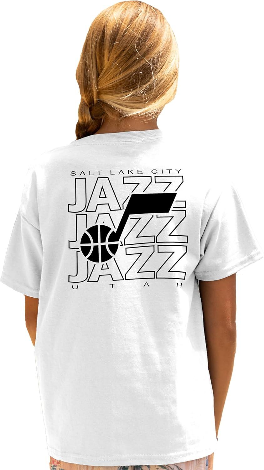 Blue 84 Unisex Kid’s NBA Officially Licensed Youth T-Shirt Front/Back Press White(White)