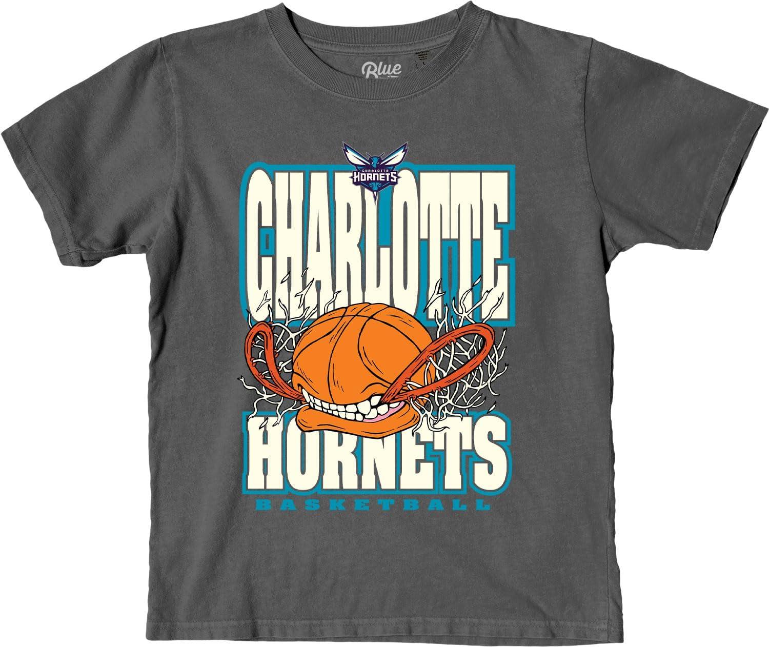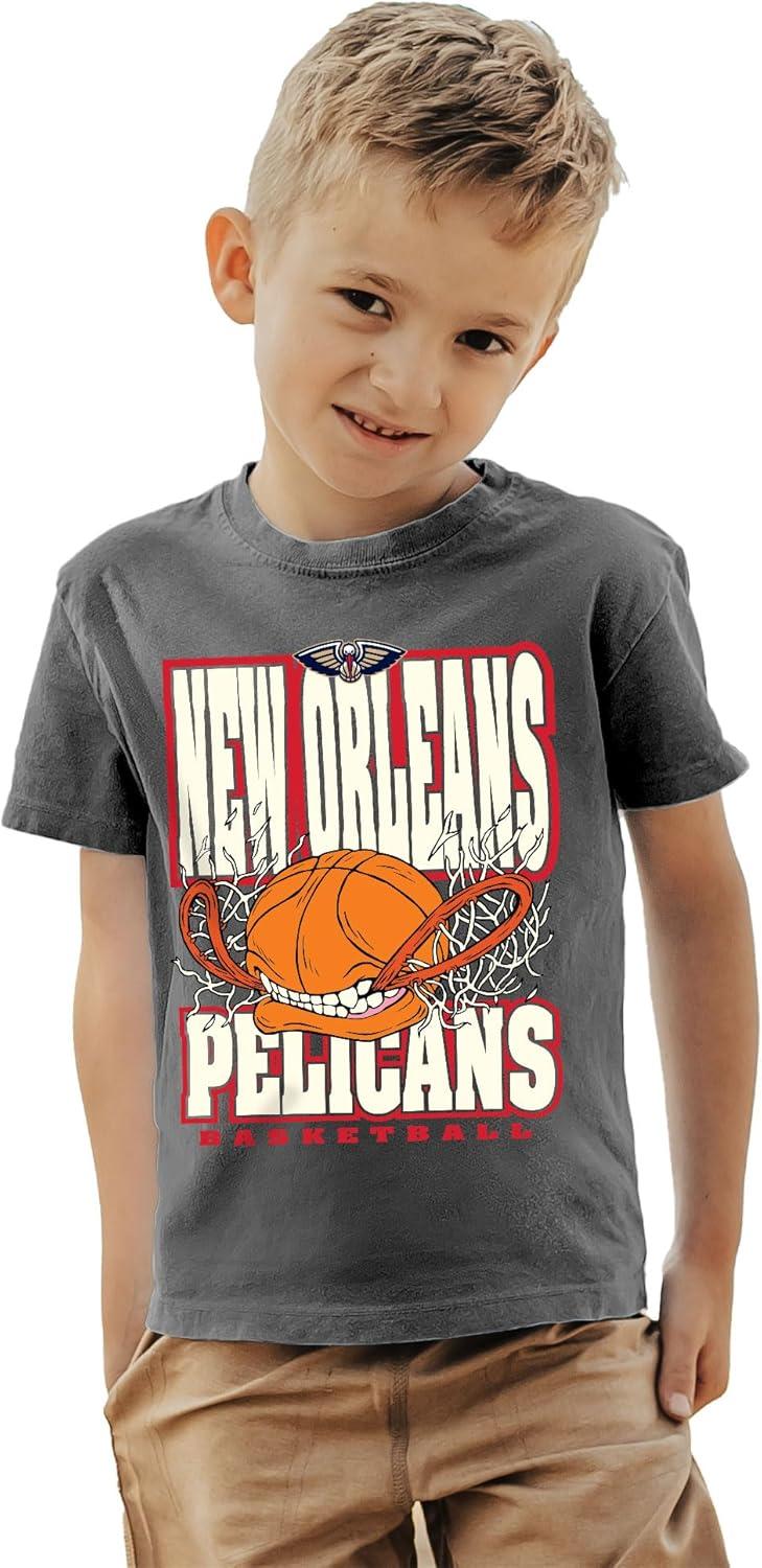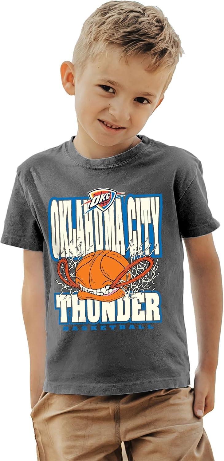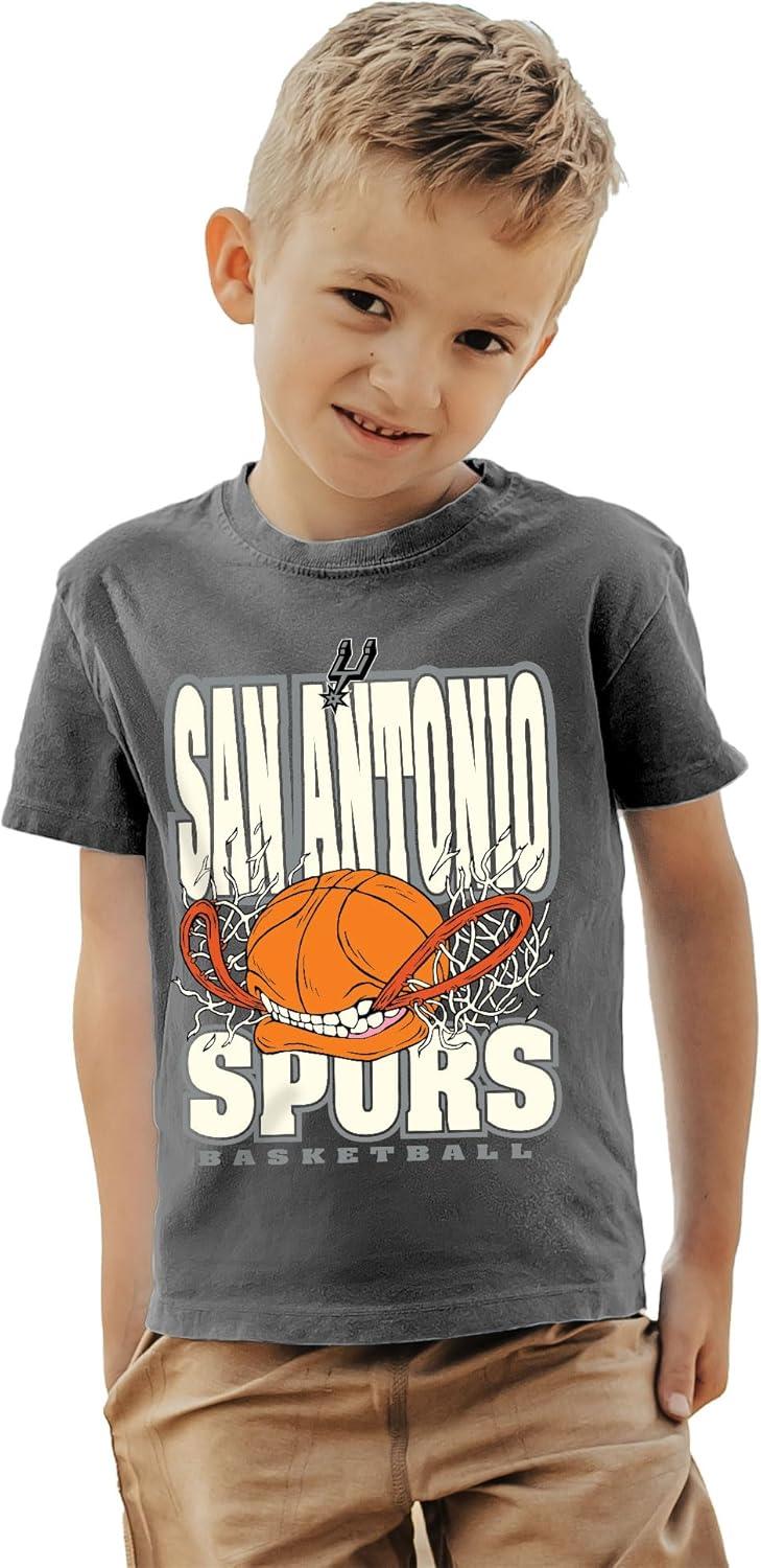 Blue 84 Unisex Kid’s NBA Officially Licensed Youth T-Shirt Ringspun Basketball Bite(Black)