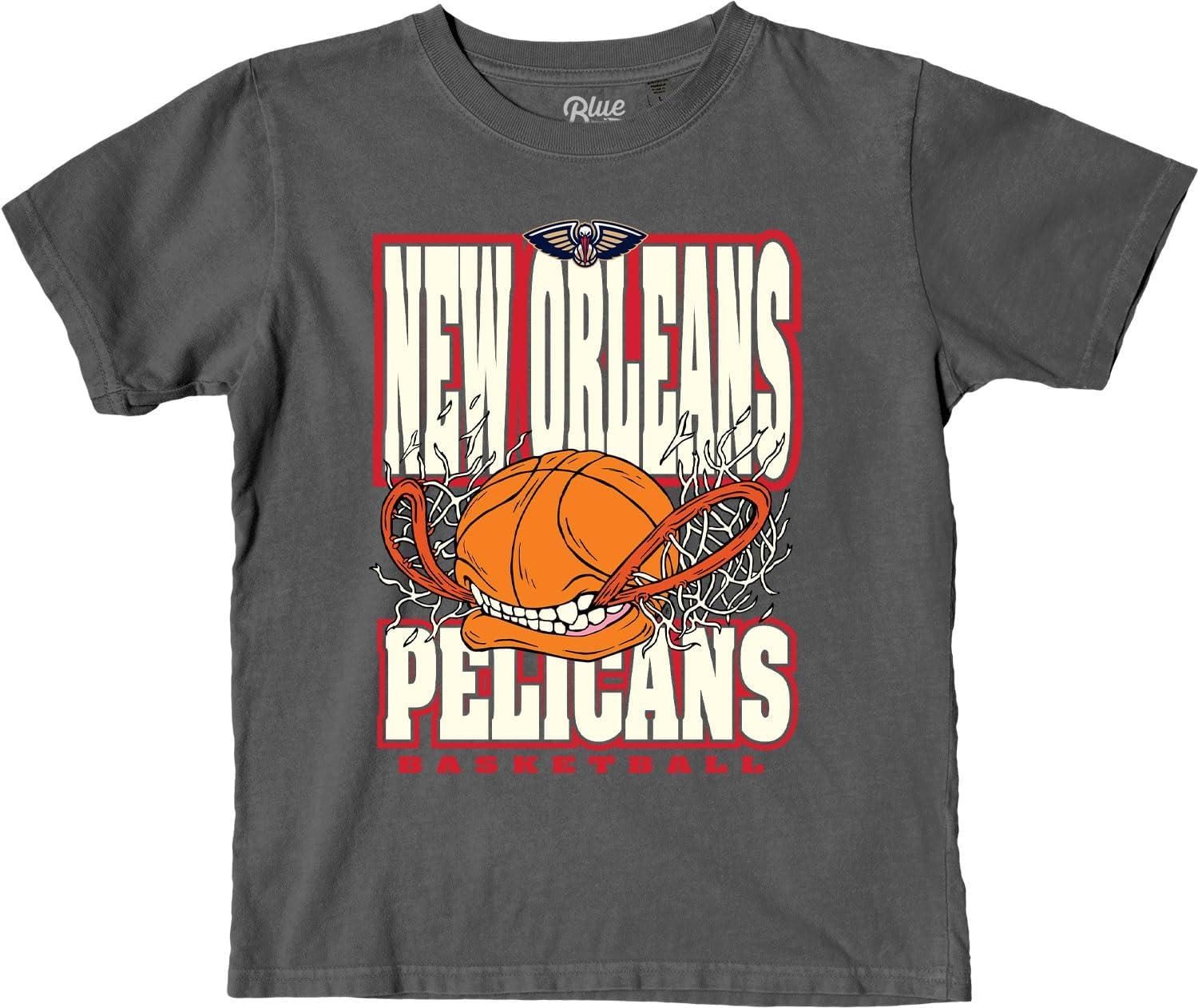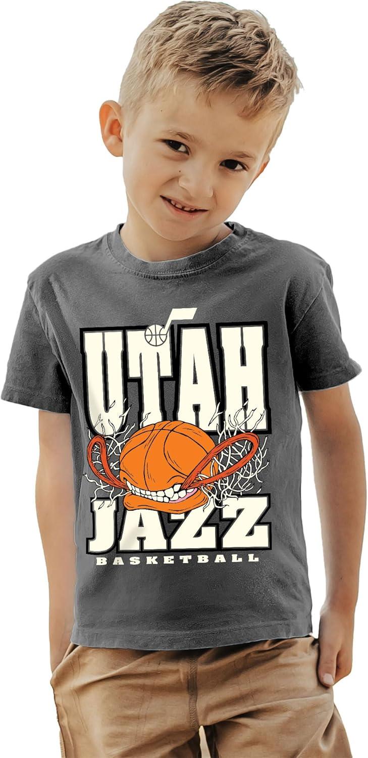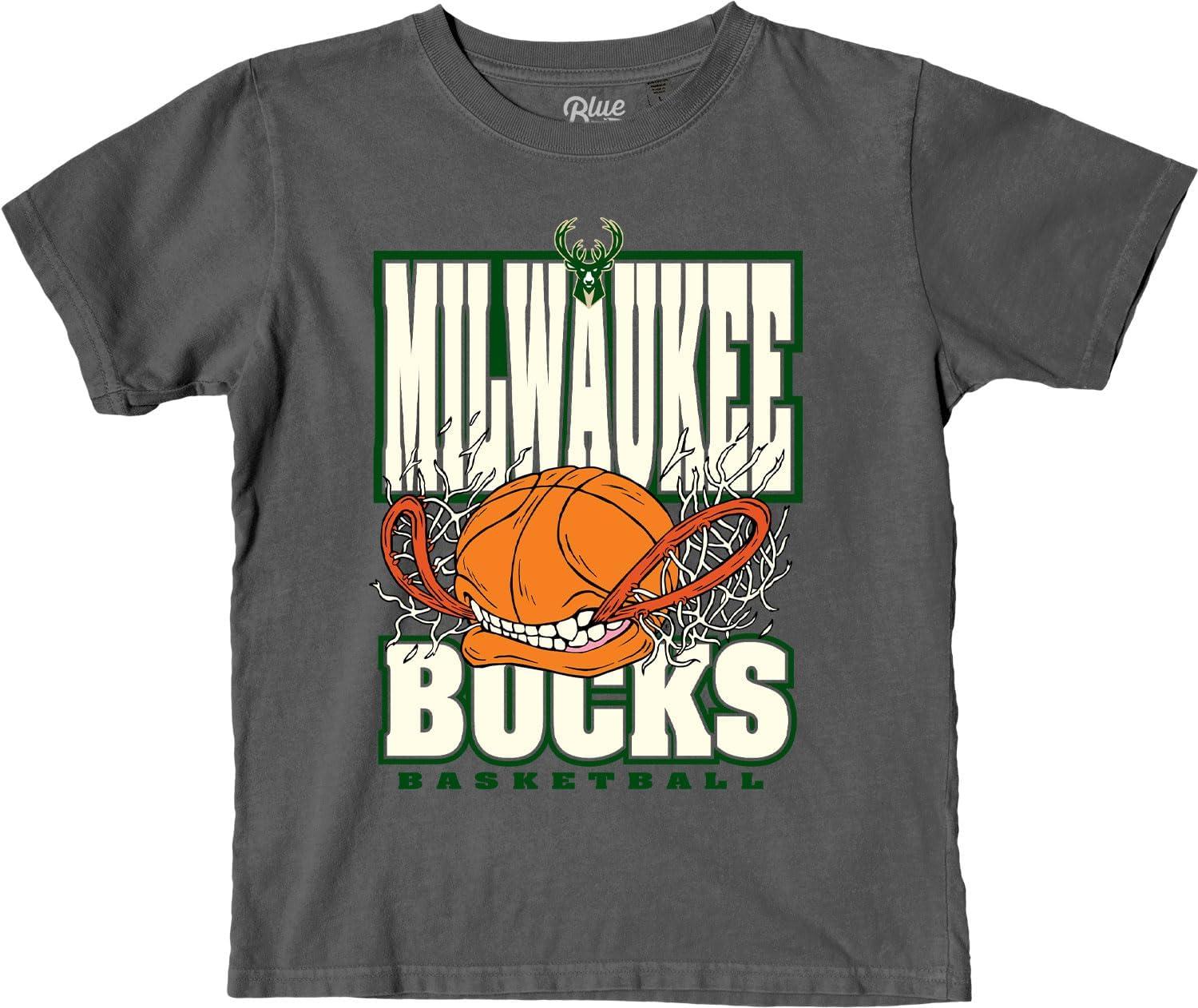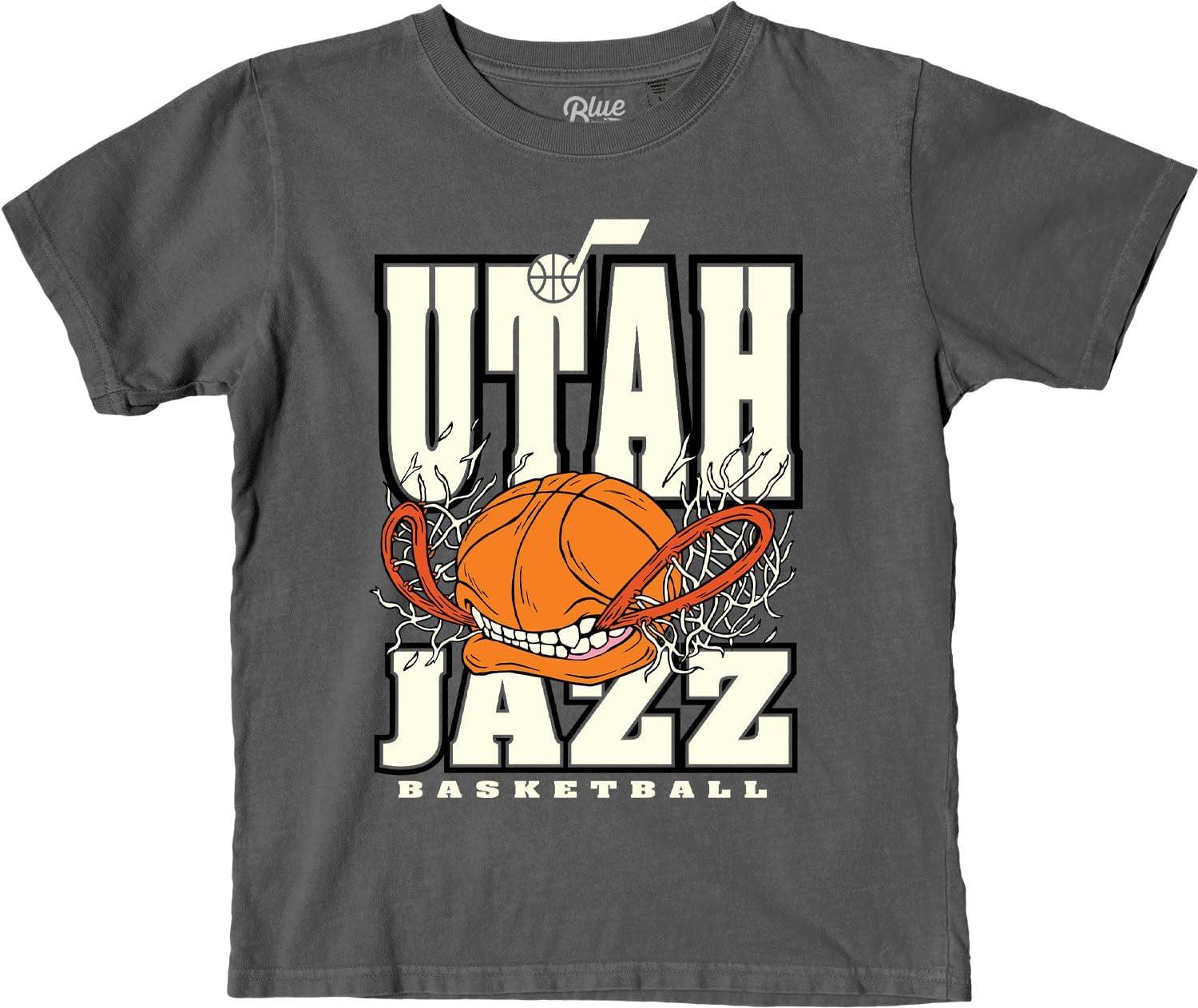 Blue 84 Unisex Kid’s NBA Officially Licensed Youth T-Shirt Ringspun Basketball Bite(Black)